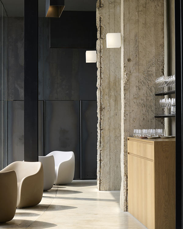 Cubo Wall réinvente l’icône lumineuse Cubo en version applique murale. Minimaliste et élégante, elle s’intègre avec harmonie dans tous les environnements, des hôtels design aux intérieurs contemporains, pour une lumière douce et raffinée.