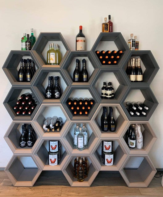 Sa caractéristique principale est donnée par la forme exagonale de chaque espace qui lui permet d'être assemblée à d'autres modules, horizontalement ou verticalement afin de créer des compositions personnalisées. Adossée au mur ou comme cloison grâce à sa structure ouverte sans fond, Hexa est modulable et convient pour tout type de décoration.